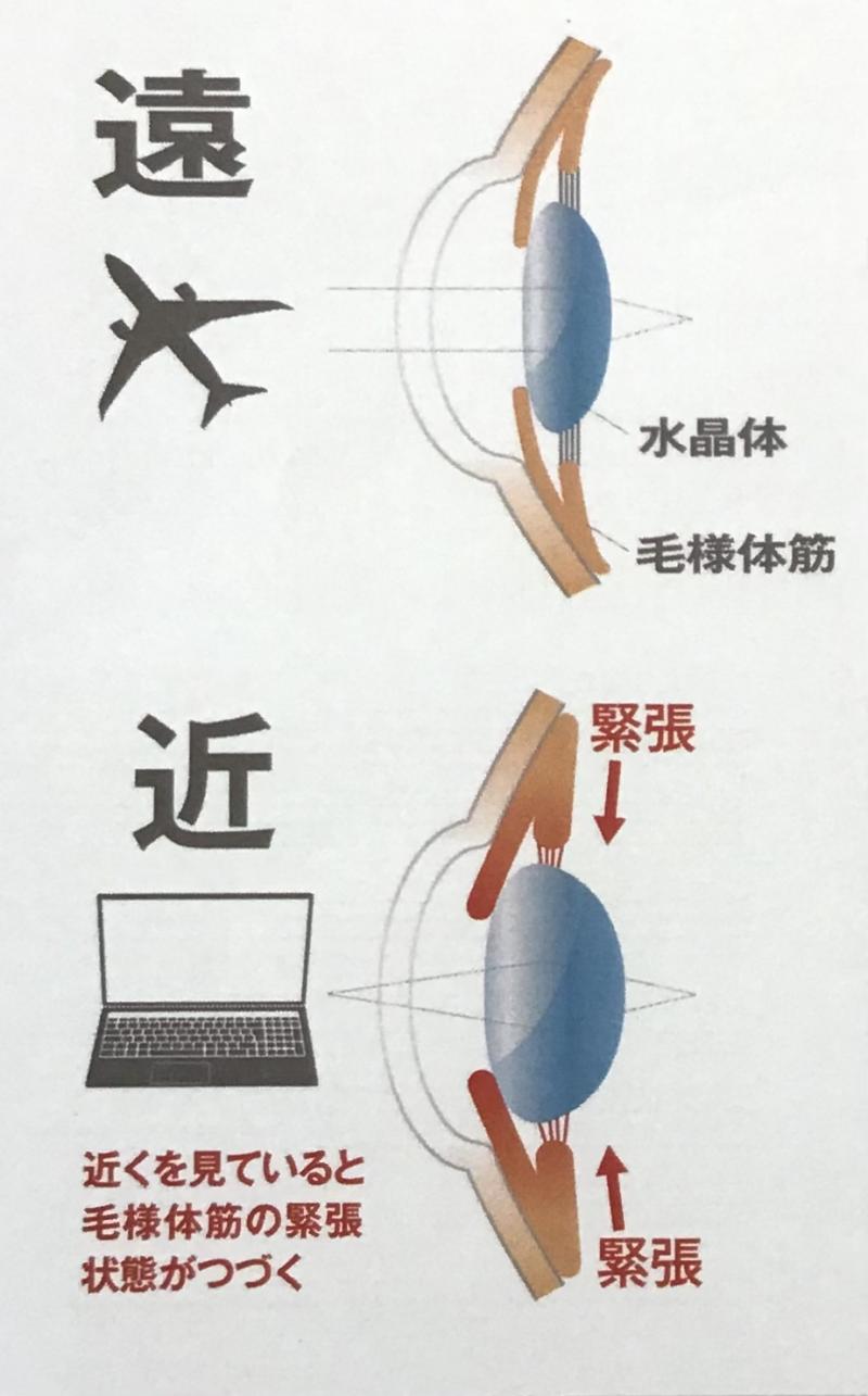 なぜ、近見作業時に眼が疲れるのかというと、遠くを見る時、眼はリラックスしています。