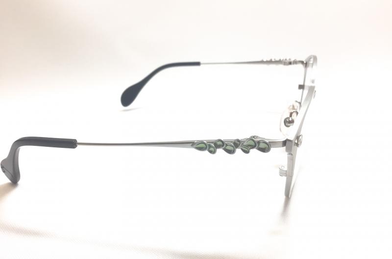 フロントやテンプルに施されたペペロミアの飾りがお顔を彩り、