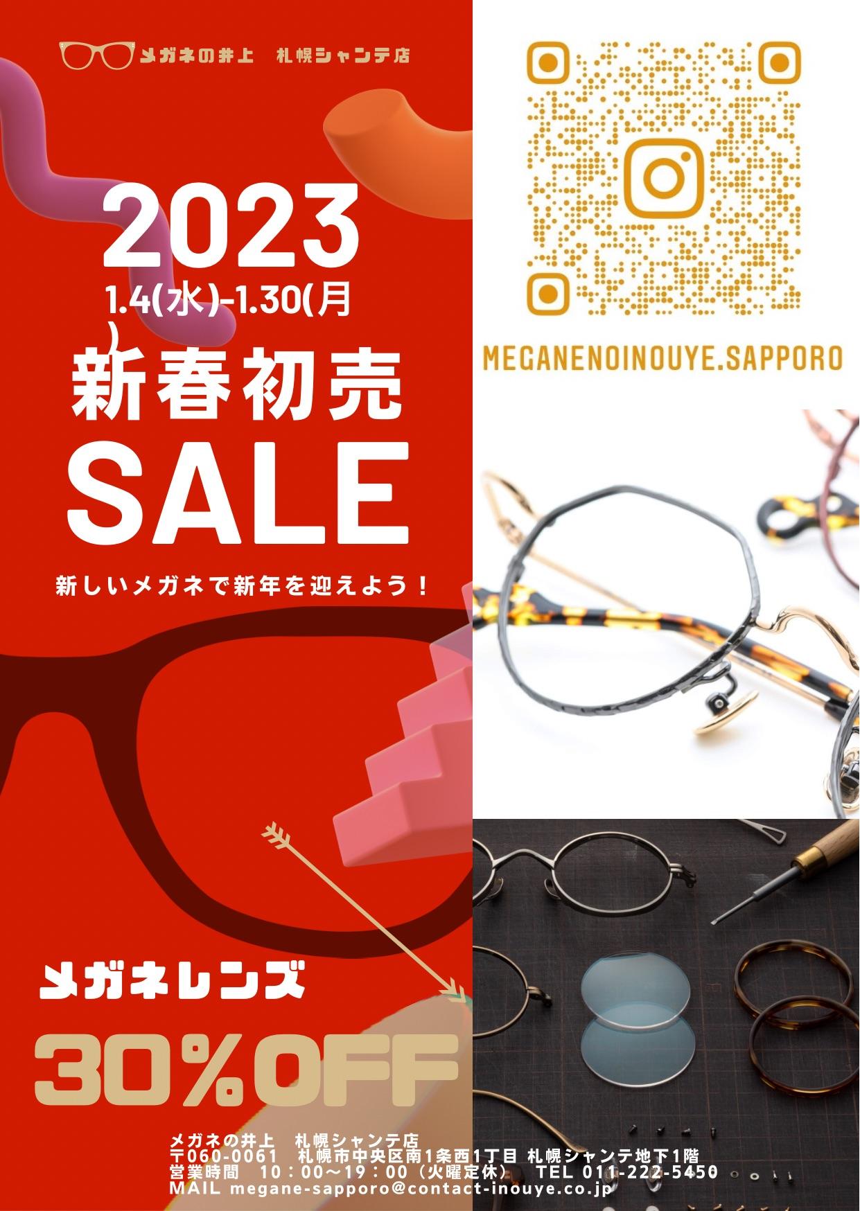 札幌シャンテ店では1月30日(月)までSALE開催中です。期間中メガネレンズがなんと30%OFFでご購入できます。