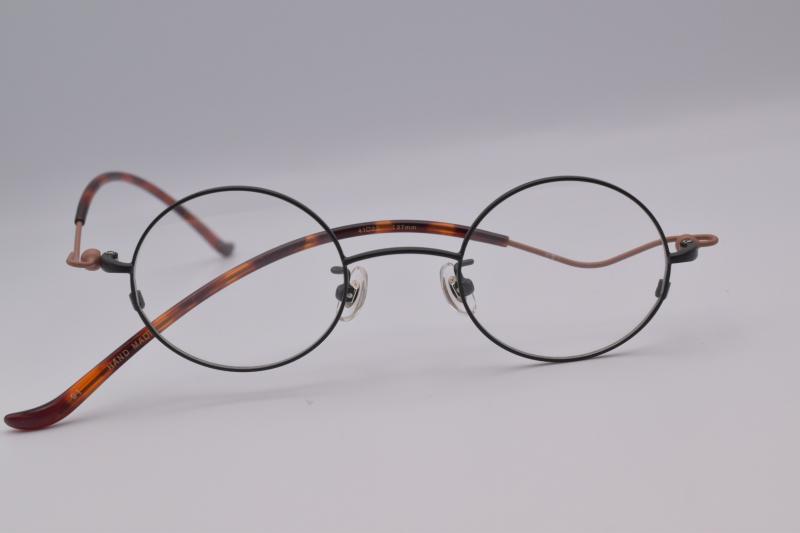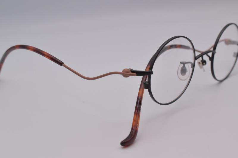 F-190横から・・・マットベージュのアーチ状テンプルにべっ甲柄のモダンがなじみます。