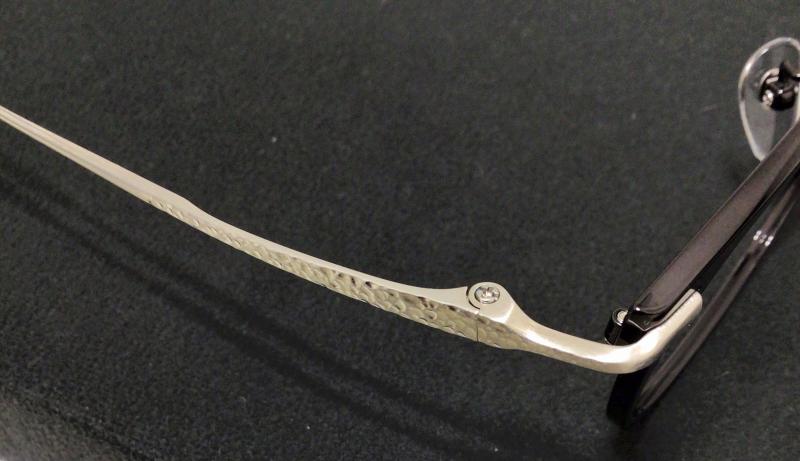 テンプルに職人の手作業によって打ち込まれた槌目模様が生み出す、機械だけでは